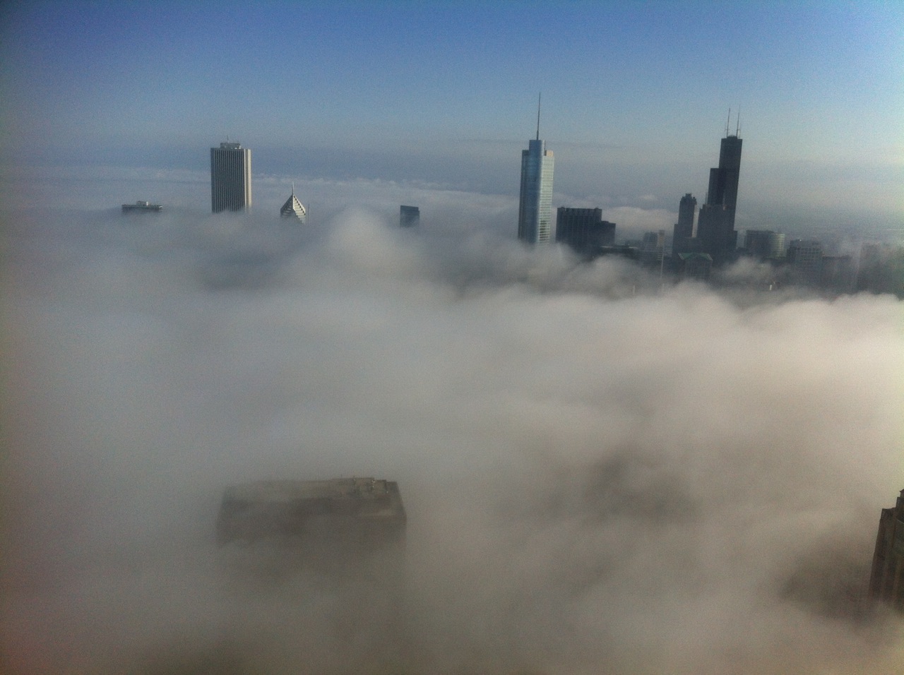 A Lake Michigan Fog blankets downtown Chicago Photo was taken from atop the John Hancock Building. Share this:Share Click to share on LinkedIn (Opens in new window) LinkedIn Click to share on Facebook (Opens in new window) Facebook Click to share on X (Opens in new window) X Click to share on Pinterest (Opens in new window) Pinterest Click to share on Tumblr (Opens in new window) Tumblr Click to share on Reddit (Opens in new window) Reddit Like Loading...